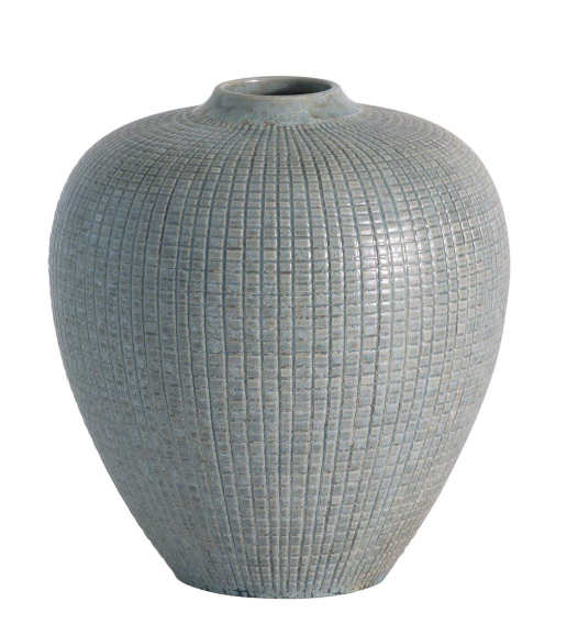 Check Bulbous Vase - Reactive Silver Blue