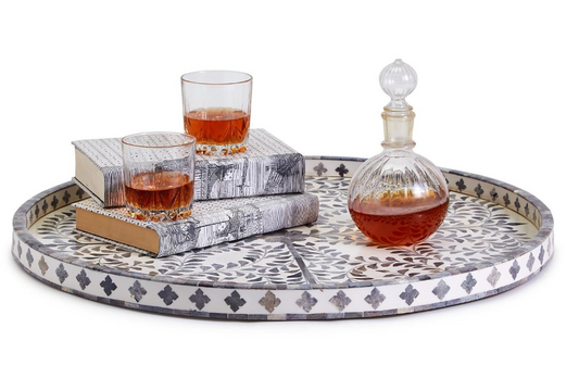 Jaipur Palace Black/White Round Serving Tray